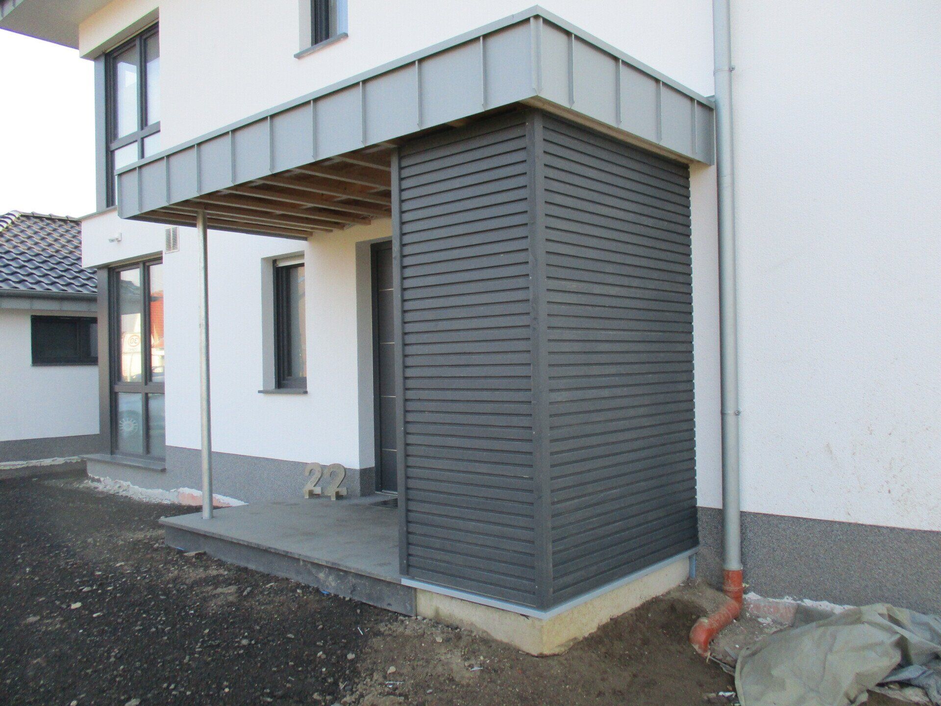 Vordächer, Empfangsbereiche oder auch ein Windfang lassen sich oft sehr leicht umsetzen. Mit vorheriger Prüfung können kleine Vordächer in der Regel ohne Baugenehmigung gebaut werden.